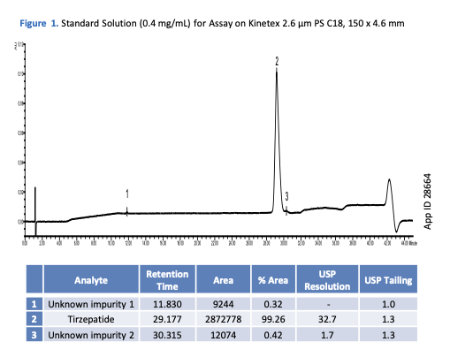 TN-1397: Optimized HPLC method development of Tirzepatide using Kinetex PS C18: Assay, Impurity Profiling, and Stability Indicating for Degradation Products