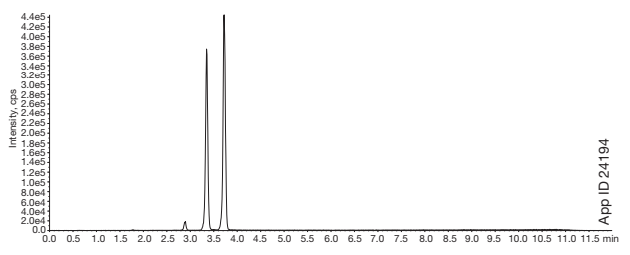 Polar C18 컬럼의 특성을 극대화하기 위해 분석 전 충분한 평형화 시간을 갖는 것이 분리능 유지에 유리합니다.